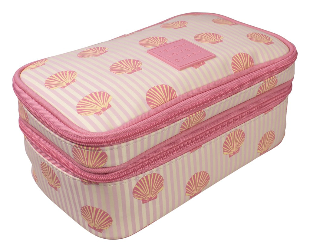 The utility bag is rectangular and long enough to store items such as brushes and other cosmetics. The double zip means you have even more space for all your small essentials.