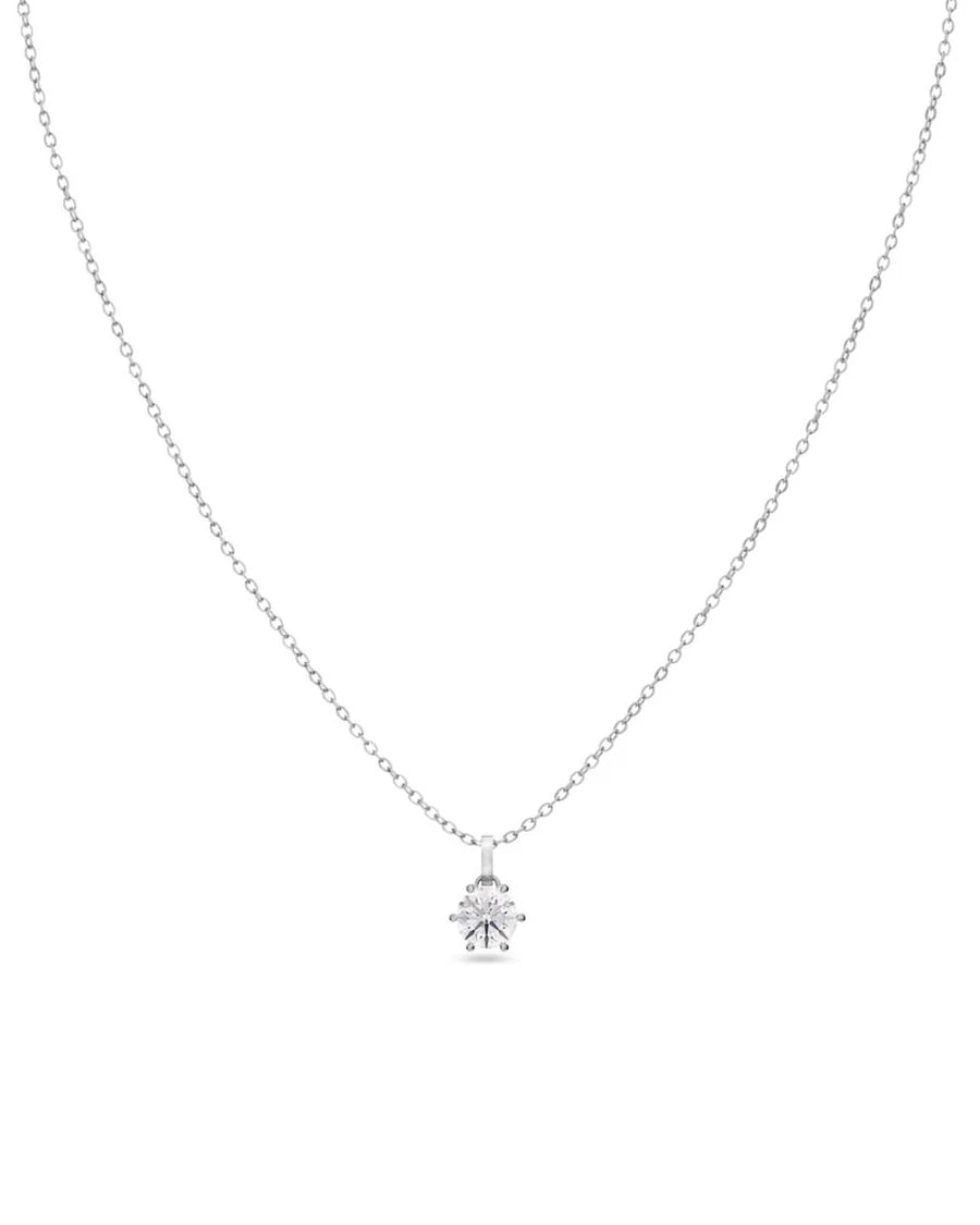 The timeless Crown Necklace features a sparkling stone held securely by six delicate claws. Its versatility allows for use as an everyday accessory, and it pairs beautifully with other necklaces and chains. Adorned with a dazzling stone, this necklace hangs gracefully from a sturdy anchor chain in lustrous shiny stainless steel. The Crown collection is the perfect choice for a special present.