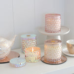 Indulge your senses with The SOi Co's luxurious home fragrance collection, thoughtfully crafted to elevate any space. Each SOi candle is meticulously hand-poured in the USA, using only the finest essential-infused fragrance oils and soy wax for an even, long-lasting and ultra-fragrant burn. The Shimmer Collection features an array of fragrances in diamond-cut glass vessels that glimmer as the fragrance burns, and a double wick for a fast fragrance release. With a lower melting point that allows for a better release of fragrance oils and a more consistent scent experience, each vessel is adorned with a glass-cut lid, adding an extra touch of elegance and sophistication, that also keeps dust and debris at bay. Each fragrance is offered in a uniquely coloured art deco-inspired glass, each hue representing the essence of the scent profile within.