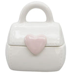 Handbag with Heart Trinket Box Pink & White 10cm H6x6x10cm