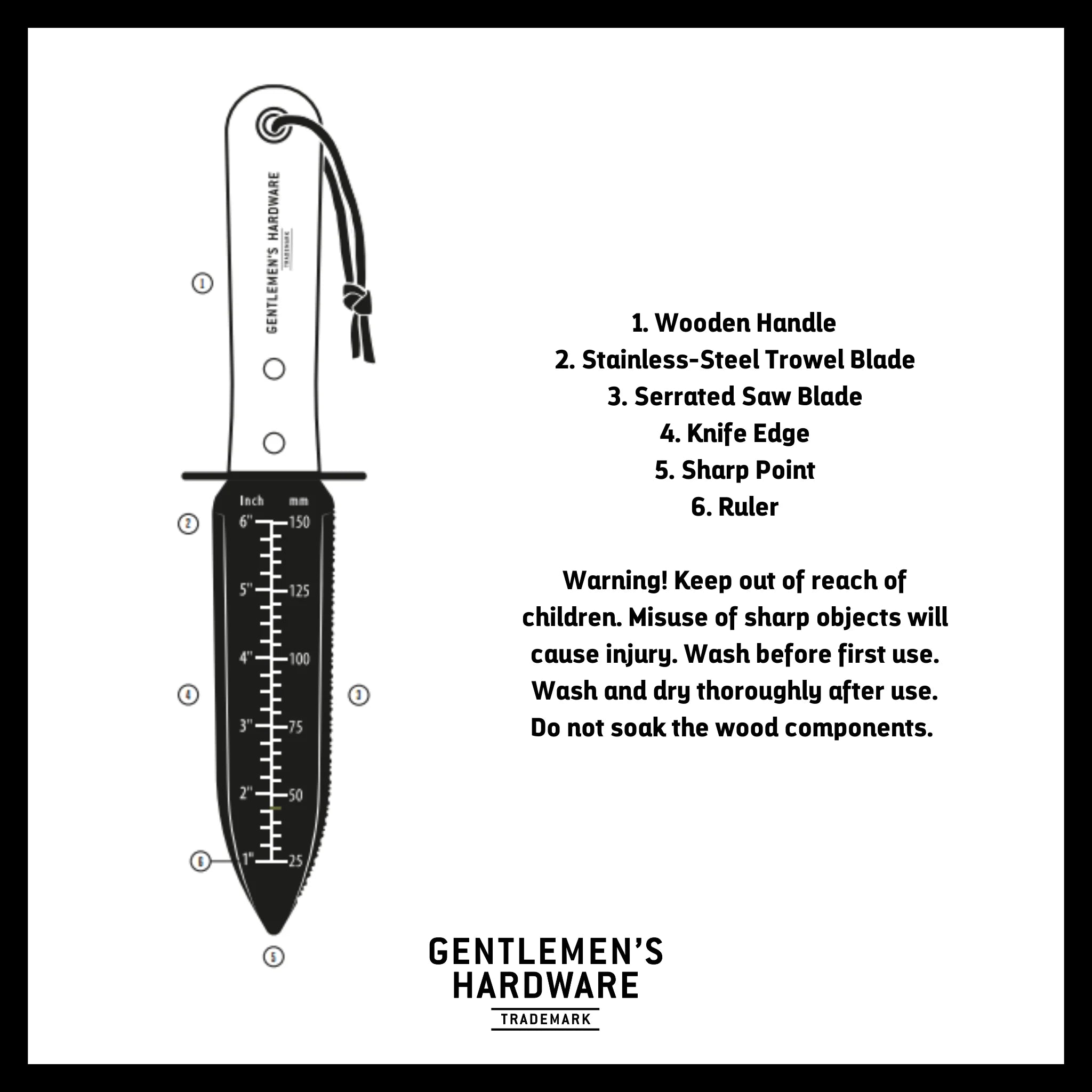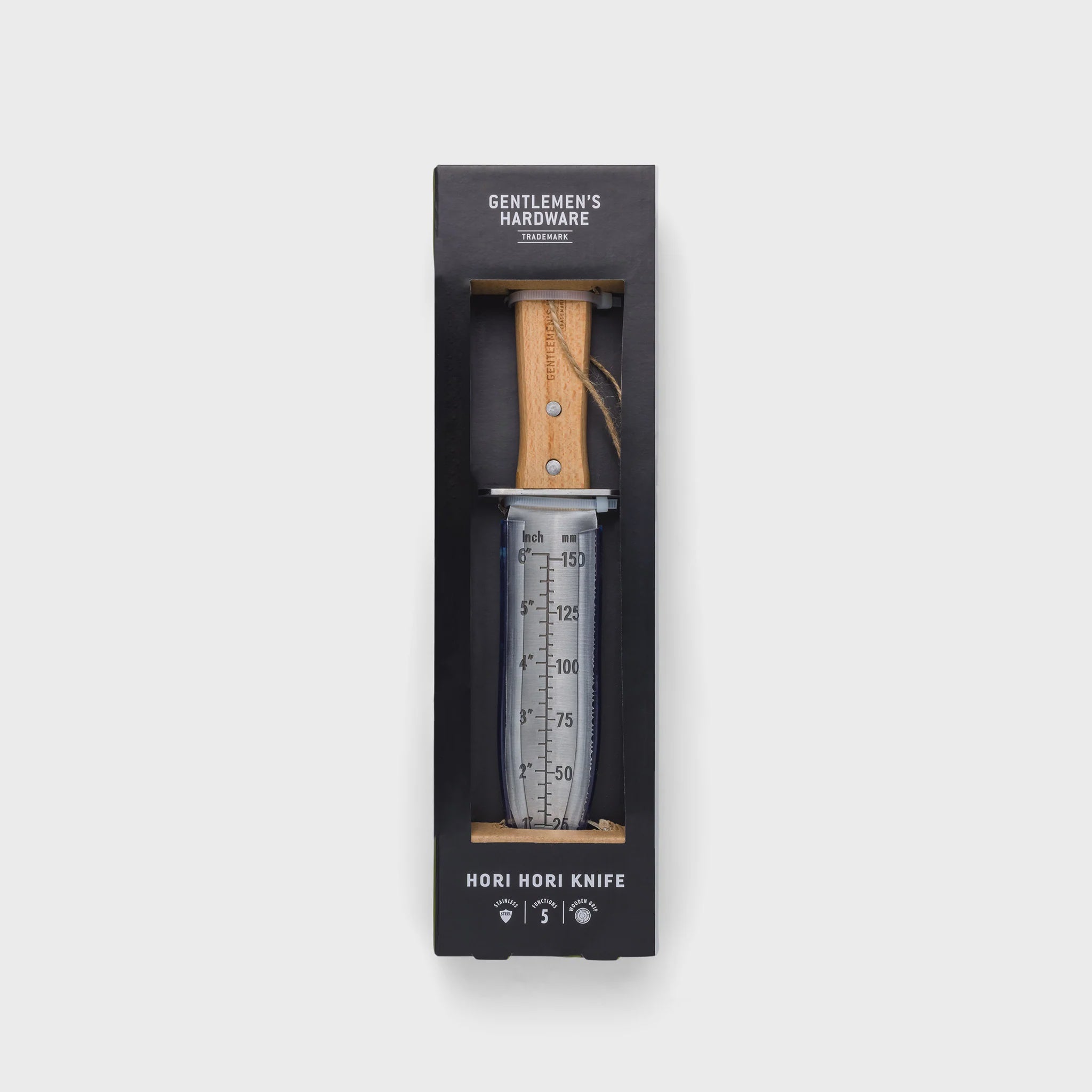 Take home the ultimate tool for multi-tasking in the garden with this Hori Hori Knife from Gentlemen’s Hardware. The dual-sided stainless-steel blade is curved to aid with digging. Use the straight edge for cutting and the serrated edge for sawing through roots with ease using our gardening knife. Use the sharp point to make seed troughs in the soil and the ruler markings ensure planting to the right spacing and depth.