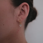 A delicate twist on the classic huggie, the Ivy Mini Drop features a petite crystal cluster charm that catches the light with every movement. Feminine and versatile, these earrings are perfect for layering with studs and hoops or wearing solo for a subtle sparkle. A timeless style you’ll love for both everyday and occasion wear.