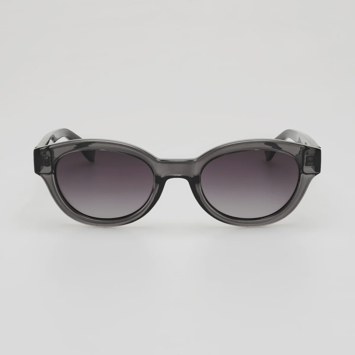 Her dark grey frame and smoke lenses are anything but understated as she embraces her cat eye shape, which has a rich history of style and sophistication.