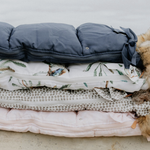 In winter, keep your little one warm in these beautiful and super warm footmuffs. Pop it in your pram for bub to snuggle up in when out and about. No need for blankets that often fall off and aren't warm enough. Never worry about bub being cold even when on long winter walks. An incredibly soft, warm and cosy space for your bub - it will be their favourite place to be. When it warms up, just simply zip down the sides or take the top completely off. And in summer, reverse it for a beautiful, waterproof pram liner.
