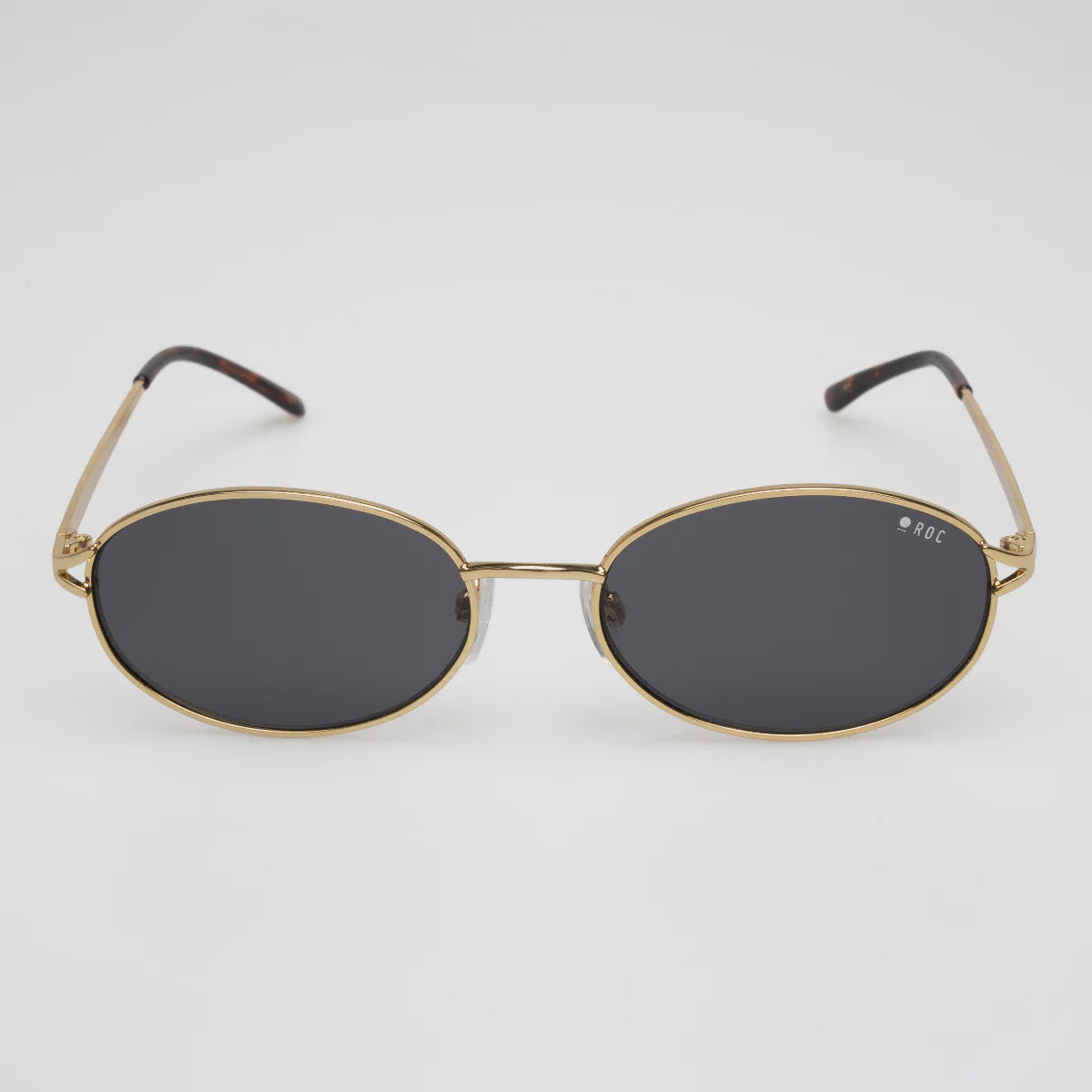 FRAME: Gold. LENS: Smoke. 100% UV Protection. Category 3