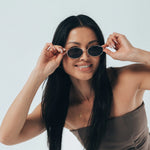 Level up your accessory game with the iconic Love Crush shades. These mini oval sunnies pair gold frames with smoke lenses for the ultimate everyday look. With 100% UV ray protection, Love Crush gives you eye care and style all wrapped up in one pretty package.