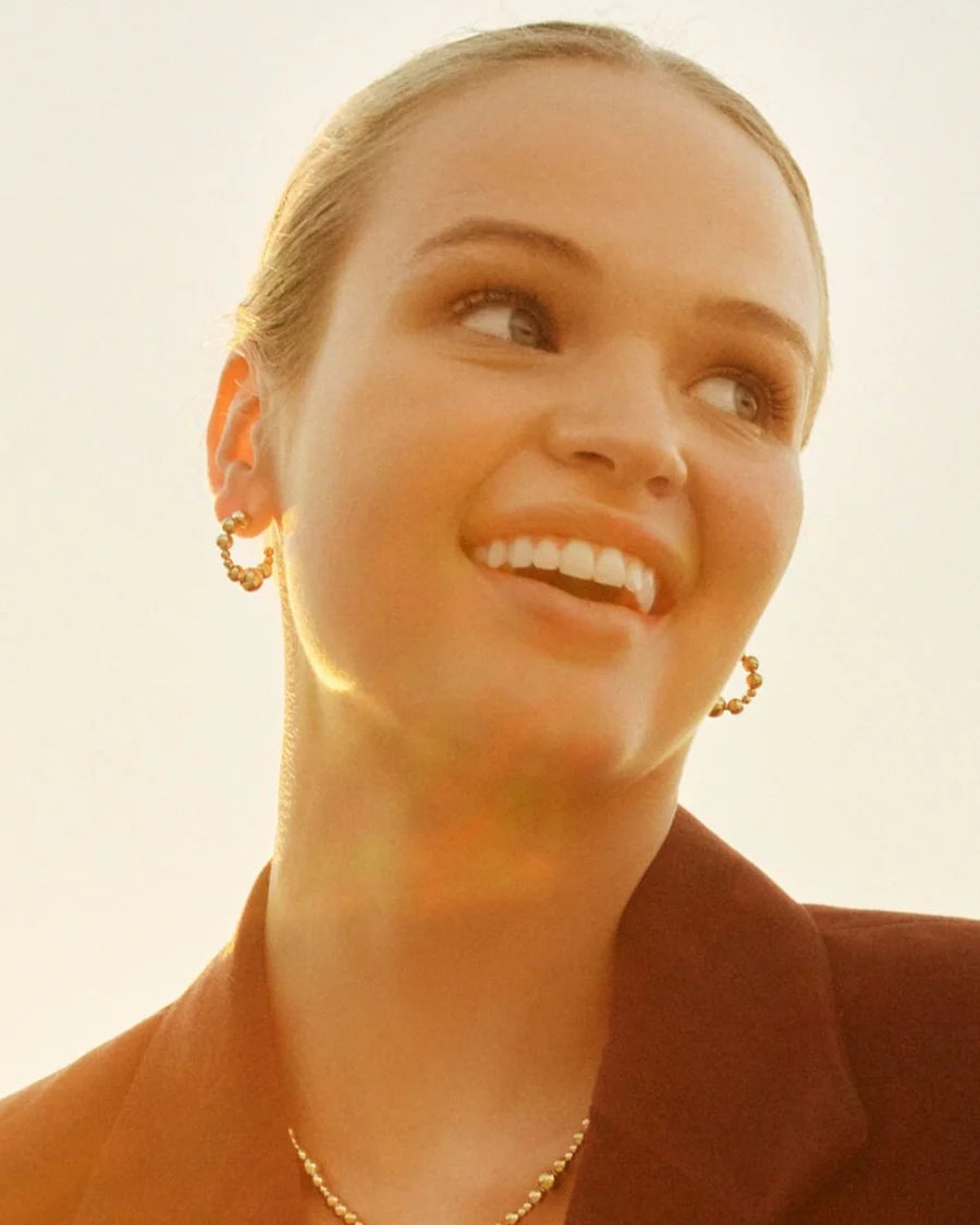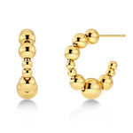 Sphere reimagines cosmic elegance with these 22mm hoops featuring an artistic arrangement of graduated gold-plated spheres. The interplay of larger and smaller orbs creates dimensional movement, evoking planets in orbit with every turn of your head.