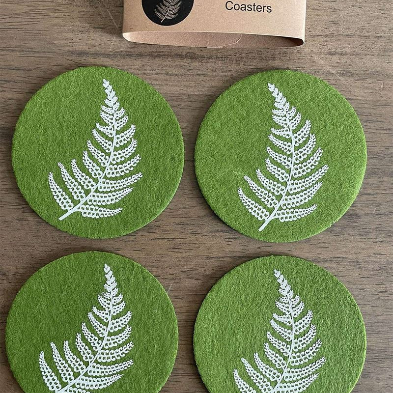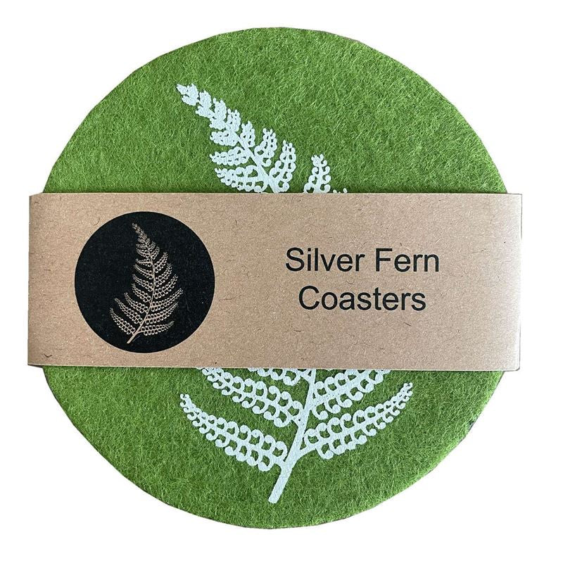 Silver Fern On Green Set of 4 - Ecofelt Coaster