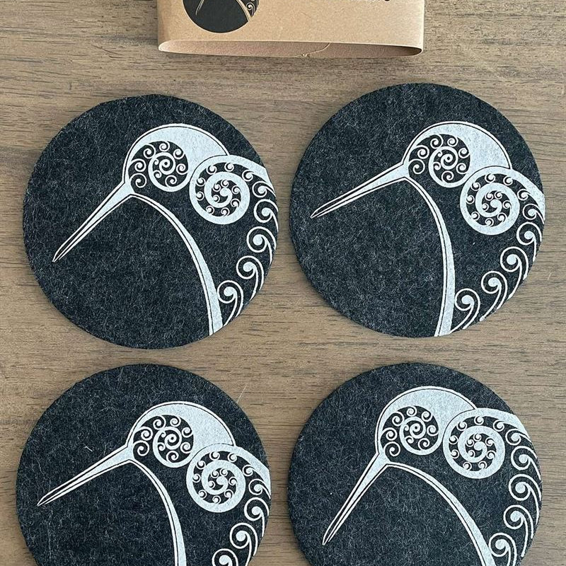 Kiwi On Dark Grey Set of 4 - Ecofelt Coaster