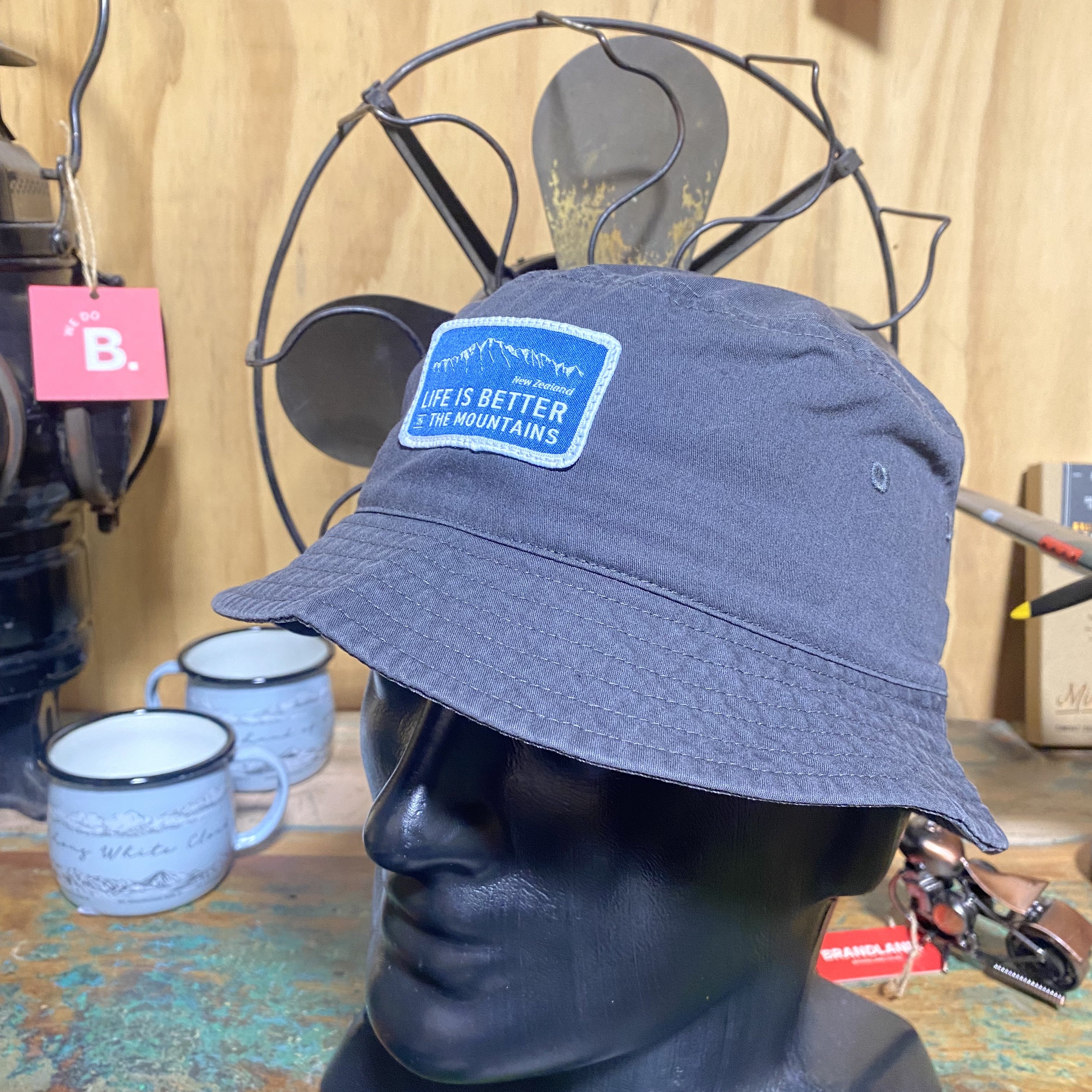 Life Is Better - Faded Black Bucket Hat (Blue Patch)