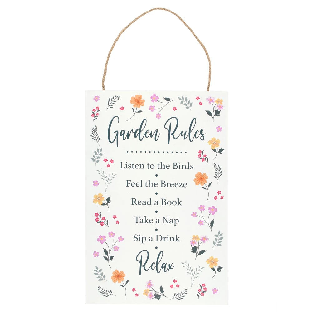Whether for Mother's Day, birthdays or 'just because', this botanical hanging sign makes a sweet gift for any lovely lady who loves to garden. This design features a list of garden rules surrounded by cheerful florals in pink, yellow and green and is strung on a jute cord. Part of the Botanical Mother's Day range of floral gifts and home decor.