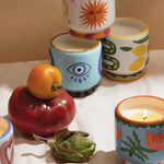 8 oz ceramic candles with hand-painted details have been filled with bold fragrances to match the imaginative design and ignite your senses. Each pairs perfectly with our new coordinating matches!