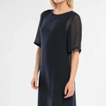 Slip it on and you're ready to go! Built in slip, this is the go to of dresses. Simple sheer over dress with inverted pleat detail at the back, nipping in the waist to give a graceful feminine silhouette.