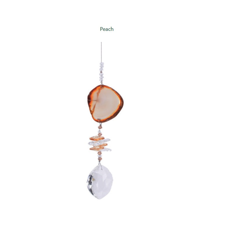 L:24.5 cm. Crystal Size: 2.75 x 1.3 x 4.7 cm - This natural chakra crystal suncatcher is great for healing and relaxing, help you maintain a good mood. Natural sliced agate hanging suncatcher.