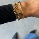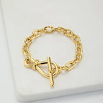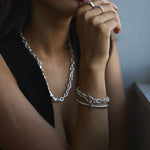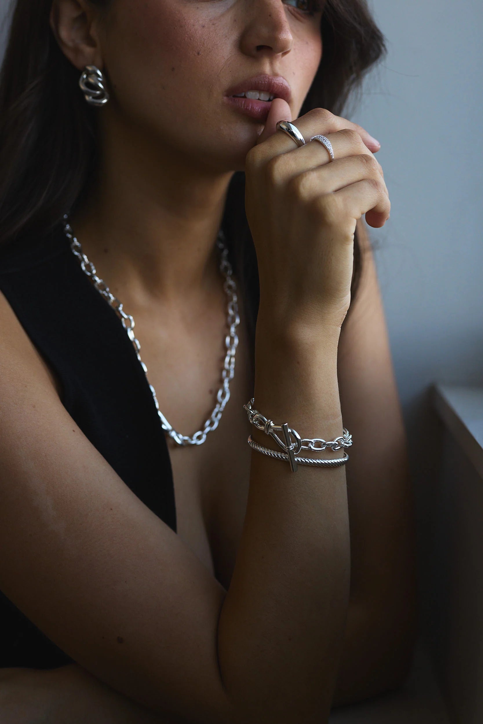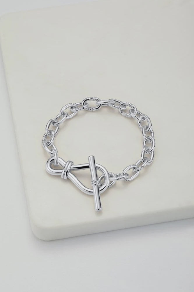 A bold and chunky statement bracelet, crafted with intricate detail, this bracelet features striking link chains and a unique fob detail. Designed to perfectly match our cult favourite Alannah necklace and hoops, it completes your ensemble with effortless sophistication.