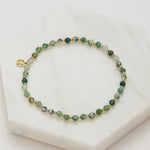 Introducing the Emerald Alenka Bracelet – a captivating blend of emerald and gold beads that exudes opulence and style. This bracelet effortlessly combines the rich green tones of emerald with the timeless allure of gold, creating a statement piece for any occasion. Elevate your wrist wear with the Emerald Alenka Bracelet, a perfect accessory to add a touch of glamour and sophistication to your ensemble.