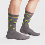Get these athletic alien socks for you next run, walk, hike or whatever. Comfortable mild cushion with classic ribbed construction and a retro stripe!