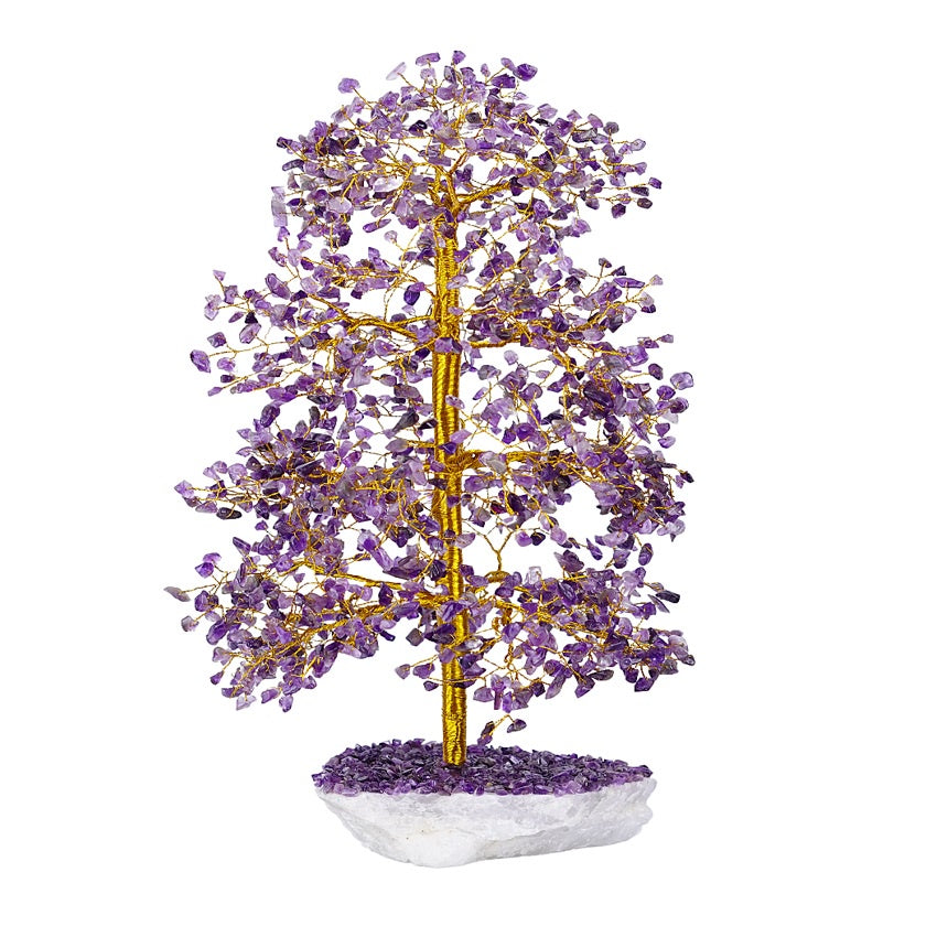 H:45 cm - Amethyst 1500 chip gem tree with a natural Crystal Base.