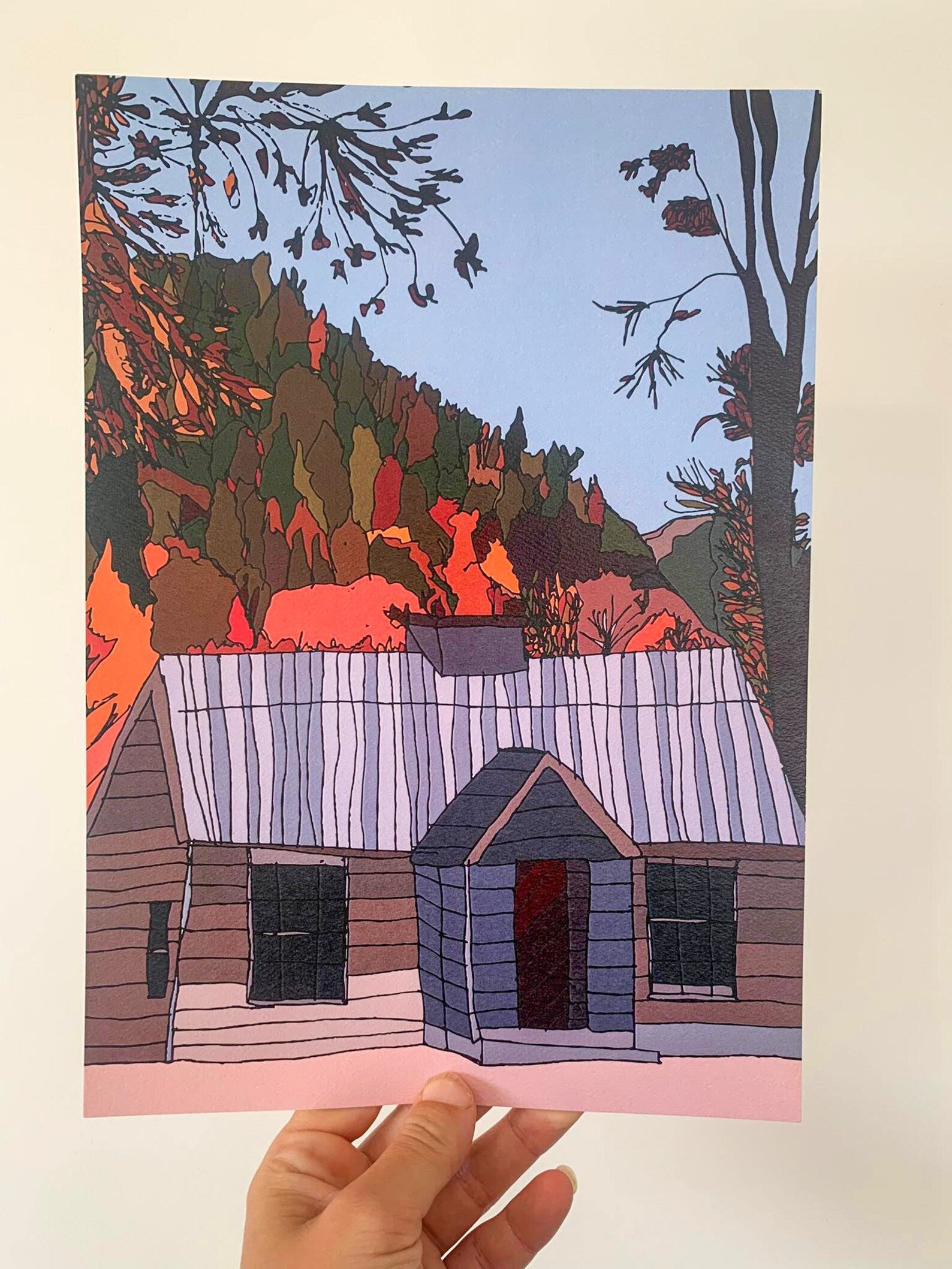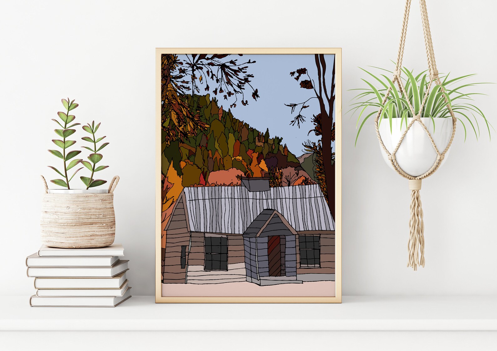This beautiful artwork captures the tranquil beauty of Arrowtown, with its historic buildings and stunning mountain backdrop. The warm colours and soft lines evoke a sense of peace and serenity, making it a perfect addition to any home or office.