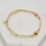 A blend of gold beads and rouge stone beads this bracelet showcases a harmonious fusion of textures and colours, creating a stunning contrast that catches the eye. The gold beads exude a touch of elegance and sophistication, while the rouge stone beads add a vibrant and alluring element to the design.