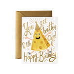 Brighten a loved one's special day with the festive fromage of Rifle Paper Co.'s Better With Age Birthday Greeting Card. Rifle Paper Co. cards are printed on FSC-certified cover paper, and come with a matching envelope.