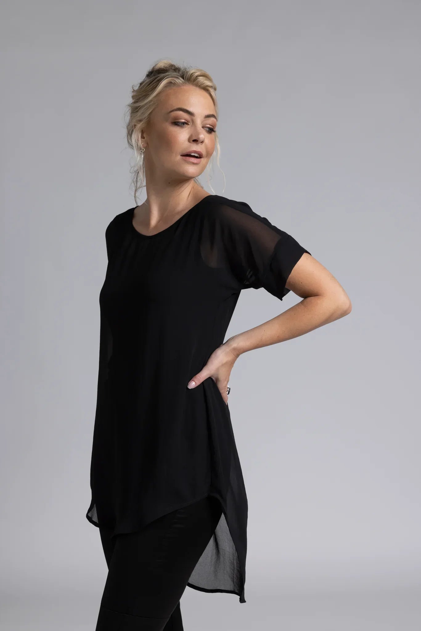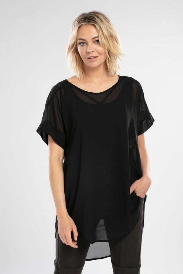 Scooped neck and an easy floaty body. Featuring a pleat at the back yoke and shaped hemline, this one totally flatters the pear shaped body. Throw over a slip or team it with your fav pant, an option is to tuck a section in at the hip.