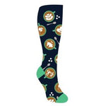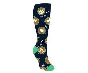 Cold outside, positively glowing inside. These knee socks capture that anticipation you feel when you order your latte or mocha on the perfect rainy day, you know you're just waiting to see what's inside that coffee cup. We think these happy designs could win at any latte art competition. Wear these brilliantly blue knee high socks on your next coffee date or deliver them to your favorite barista!