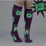 These socks glow in the dark! Hold them up to light or walk outside in the sun before turning off the lights to watch the special thread glow.