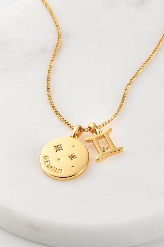 Introducing the Zodiac Necklace, a personalised and meaningful accessory that celebrates your astrological sign. This necklace features a dainty chain with two pendants specifically customised to your zodiac sign. The first pendant showcases the iconic symbol of your zodiac sign, while the second pendant displays a beautifully engraved representation of your sign's name or corresponding constellation. Crafted with attention to detail, the Zodiac Necklace is a unique piece that reflects your individuality and connection to the stars. The adjustable chain allows you to find the perfect fit, and the high-quality materials ensure durability and long-lasting wear. Whether as a personal keepsake or a thoughtful gift for a loved one, the Zodiac Necklace is a stylish and meaningful way to honour your astrological identity. Embrace the cosmic energy and let your zodiac sign shine with the exquisite Zodiac Necklace.