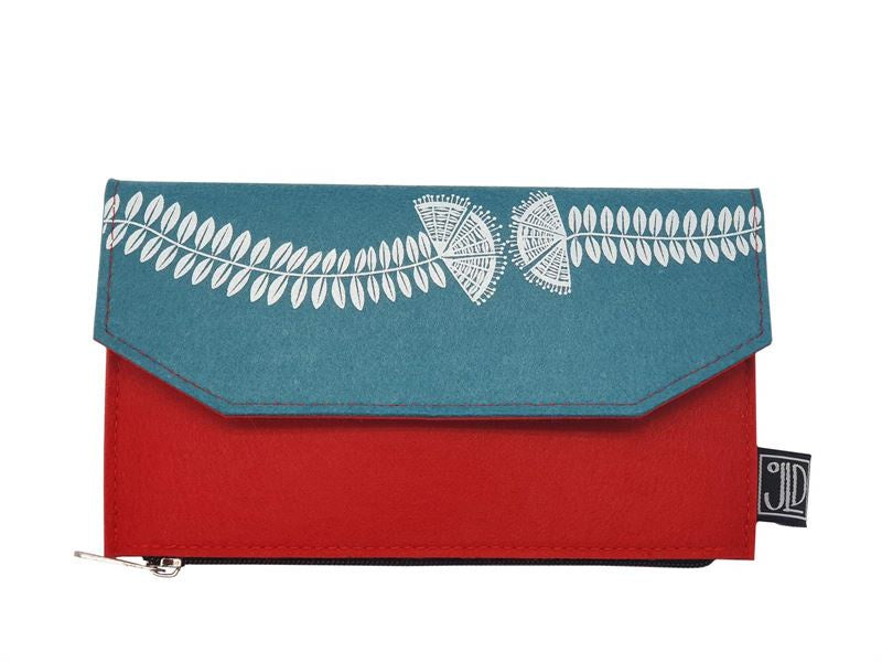 EcoFelt Wallet - Pohutukawa Teal & Red