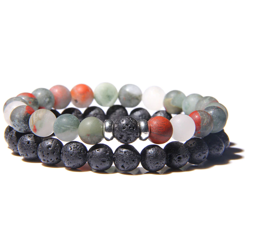 Men's Ocean Jasper & Lava Stone Bracelet Set