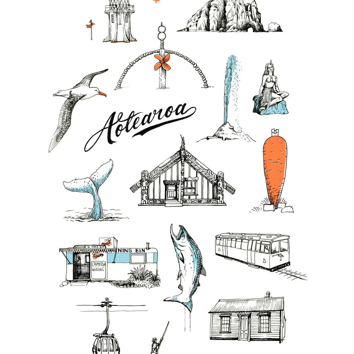 NZ Places Tea Towel