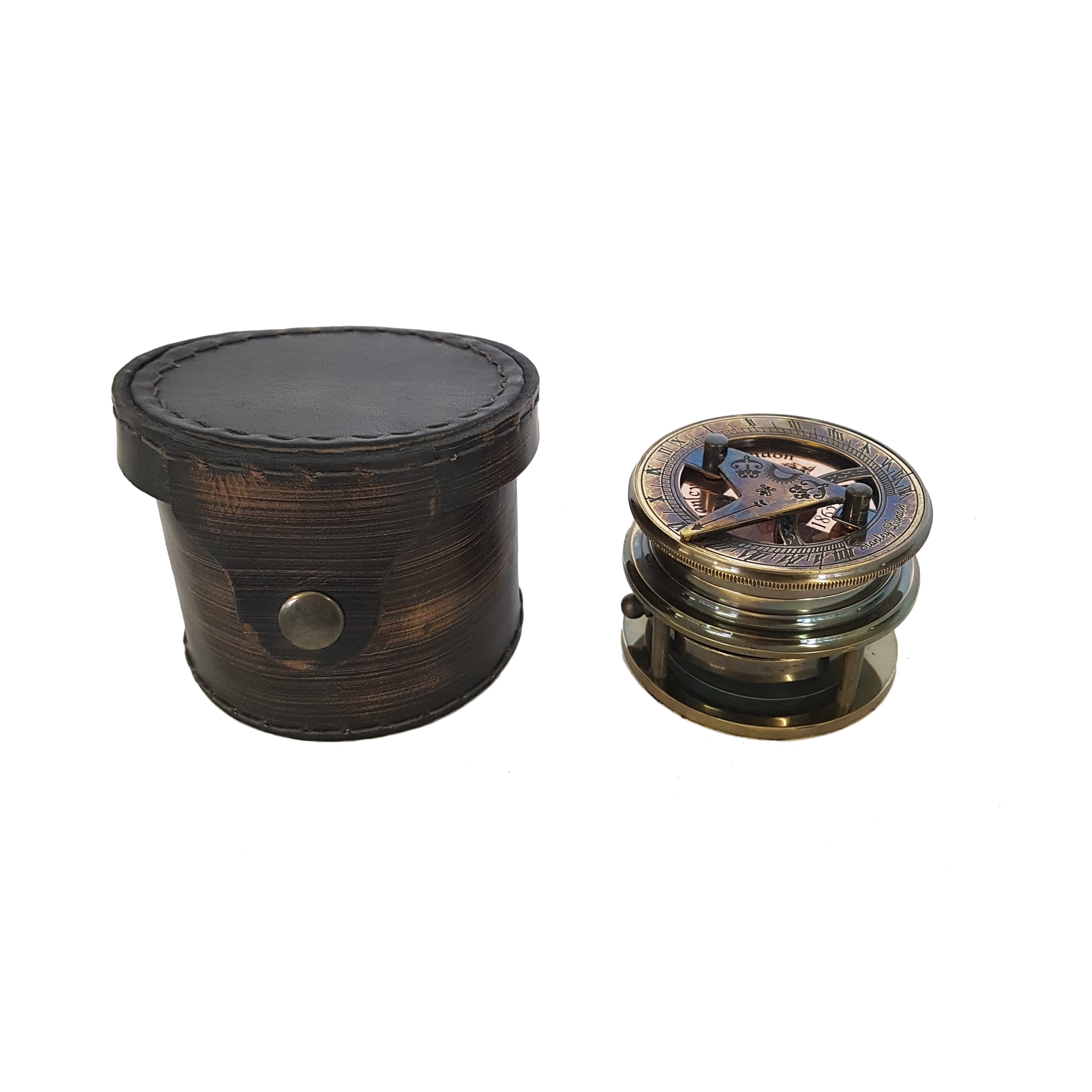 Brass Sundial/ Compass/ Magnifier Leather Pouch