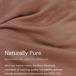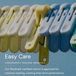 We use extra fine 100% merino wool, it's nearly four times finer than the average human hair. This means it's incredibly soft against the skin and never itchy. Merino is inherently breathable and temperature regulating, keeping babies warm in cold temperatures and cooler in warm temperatures, this makes it a great year-round daily choice as well as being perfect for sleeping in. It also wicks excess moisture away from the skin, is hypoallergenic, and odour resistant, keeping skin comfortable and dry day and night. Merino wool is also an environmentally responsible choice, being a natural, renewable, and biodegradable fibre.