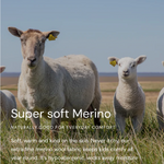 Merino sheep produce the finest and softest wool in the world, its benefits are so great that no other fibre- natural or man-made, can match it.