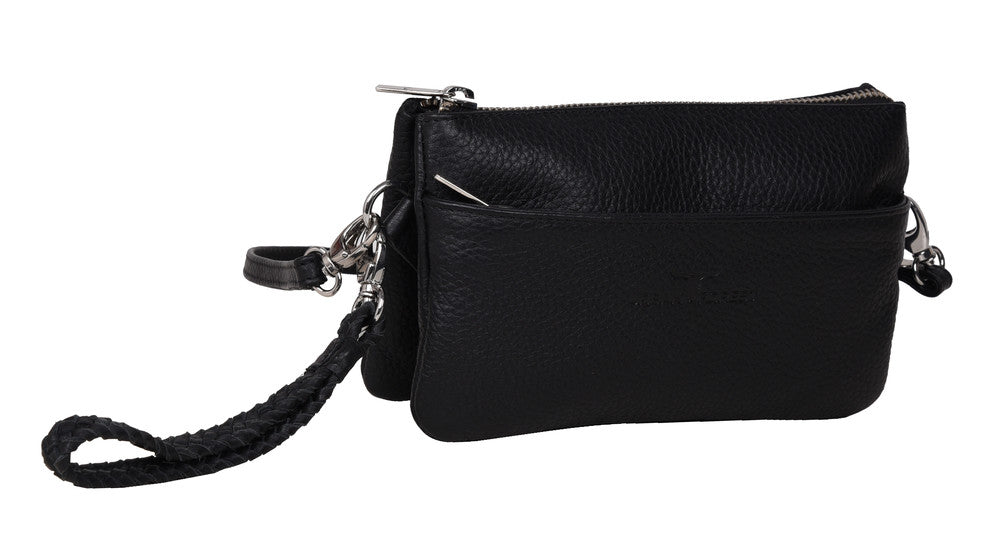 - Adjustable & removeable leather shoulder strap. Removeable plated hand leash