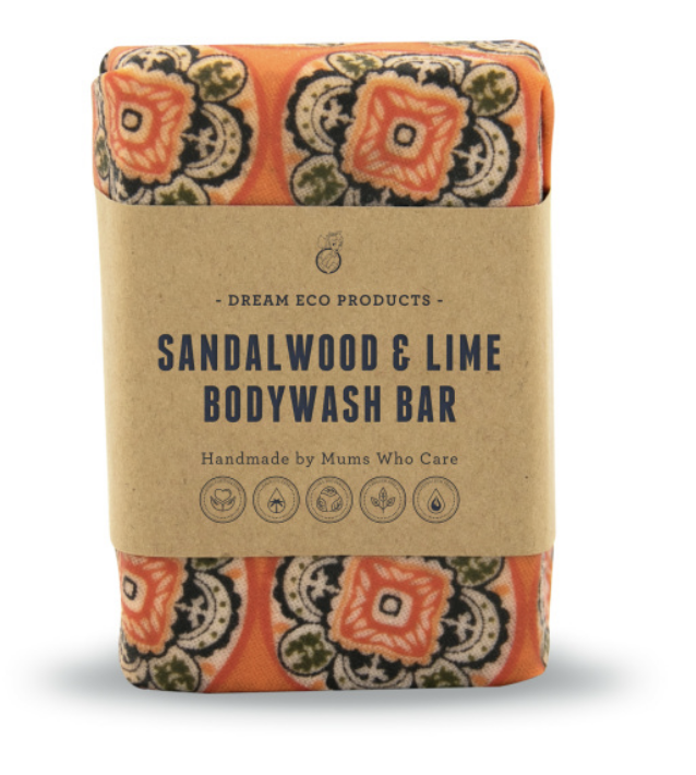 A soap-free body wash bar ( zero waste and plastic-free!) Sandalwood and Lime essential oils are both good for the skin. Both having natural antioxidant properties to help protect the skin from aging and damage. Perfect for everyday. Sold wrapped in a beautiful beeswax wrap which then becomes an excellent way to store your bar. To store: Lay your wet bar on the beeswax wrap to allow excess moisture to dry, then wrap to protect your bar from drying and cracking. Store in a dry place between uses. Approx 140gms Contains: Emulsifying Conditioner Pellets (palm free, plant based), Cocoa Butter, Shea Butter, Glycerine, Jojoba Oil, Silk Protein Powder, Pro Vit B5, Vit E, Sandalwood and Lime Essential Oils