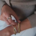 Bold and contemporary, theEmerson Bracelet is designed to make a statement. Featuring high-shine rounded links with a sculptural, domed finish, this piece adds instant impact to any look. Its structured silhouette and polished gold plating make it the perfect bracelet to wear solo or layered for a modern, stacked effect. A true showstopper that balances elegance with edge.