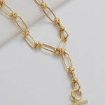 The Lucia Necklace is the ultimate in versatile styling — wear it as a classic chain or as a lariat for a modern twist. Featuring an elegant fob pendant that can also be removed, this piece allows you to customise your look with ease. Crafted in polished gold links, Lucia is a timeless design made for layering or wearing solo as a statement.