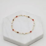 The Monique Bracelet – Blush is a beautifully crafted piece featuring a mix of soft blush-toned beads paired with lustrous freshwater pearls. This elegant combination creates a refined yet effortless look, perfect for everyday wear or special occasions.