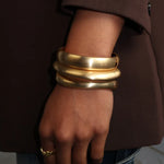 Make a statement with the Olivia Brushed Bracelet, a bold chunky bangle featuring a convenient spring closure. Finished with our distinctive brushed texture, this bracelet is perfect for wearing solo for a sleek, modern look or stacking with our Ally and Nara bracelets to create a striking layered effect. Its versatile design and textured finish make the Ally Brushed Bracelet a standout piece in any jewellery collection.