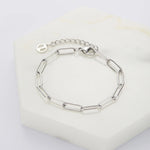 The Ruby Bracelet, a versatile paperclip chain style bracelet designed to hold your favourite charms or to be worn elegantly on its own. Crafted from durable stainless steel, this bracelet is not only stylish but also waterproof, ensuring it retains its brilliance in any condition.