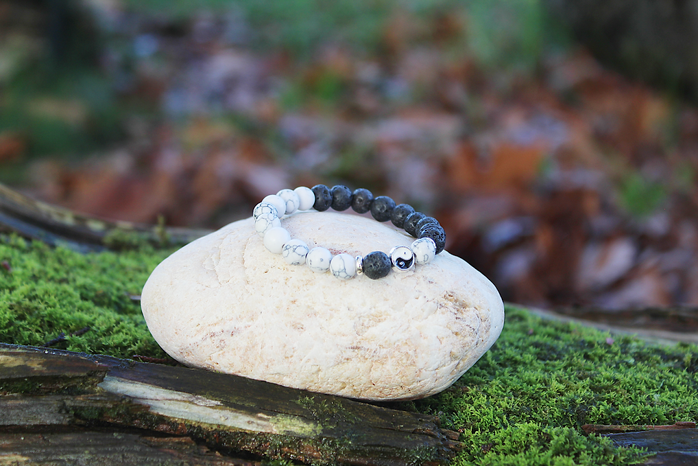 White Howlite Yin & Yang Lava Stone Bracelet