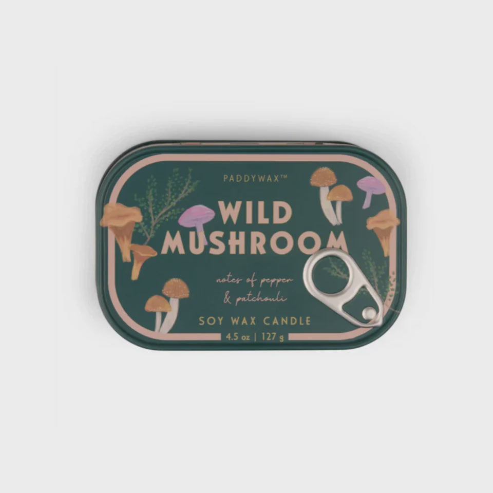4.5 oz. Two-Wick Tin Candles | With a faux pull-tab for added character inspired by sardine tins, these tin candles with hand illustrated artwork offer a cozy glow with its two wicks, and a comforting scent.