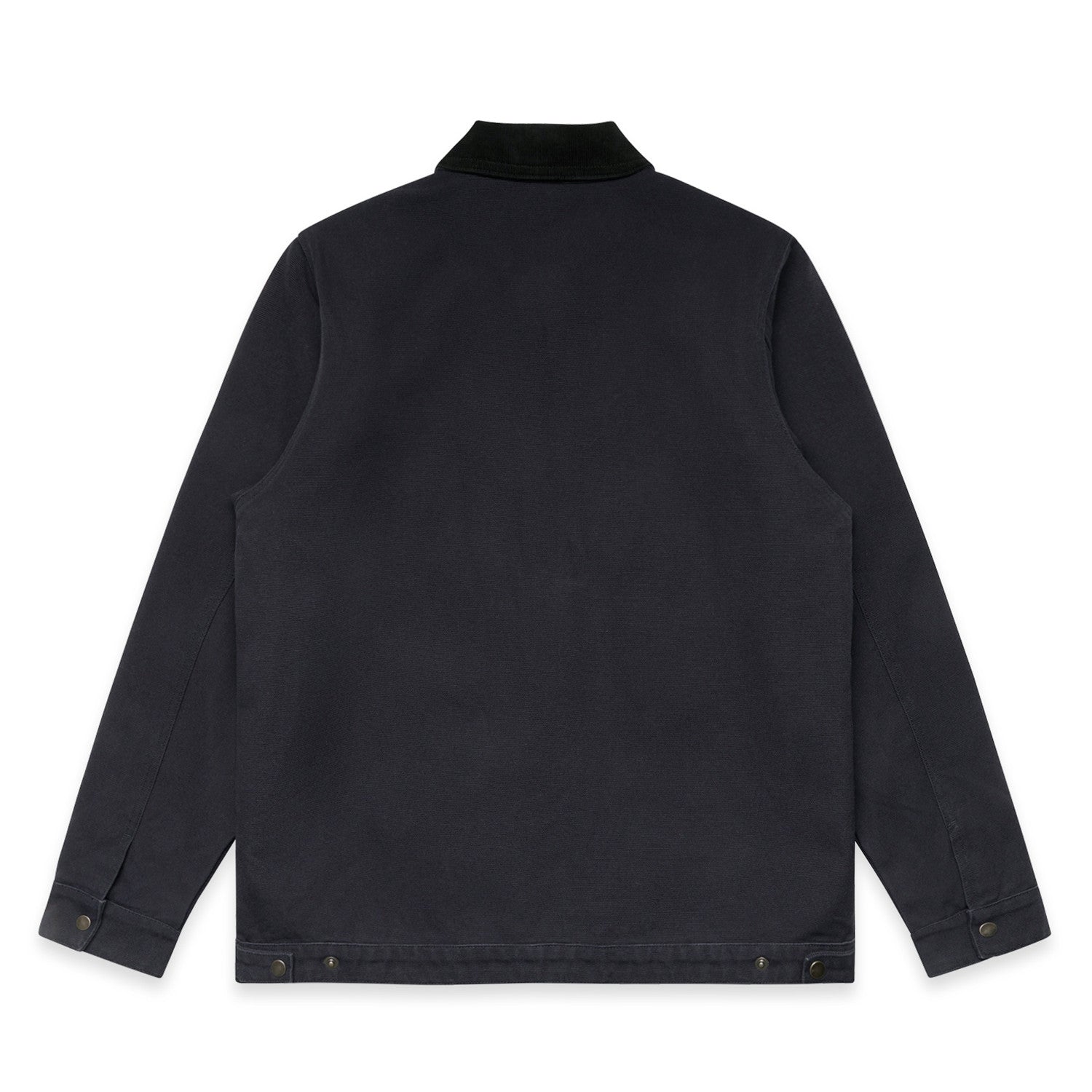 Heavy weight, 470 GSM, 100% cotton duck canvas, polyester blanket lining for body, recycled polyester padded sleeve lining, 16 wale contrast corduroy collar facing