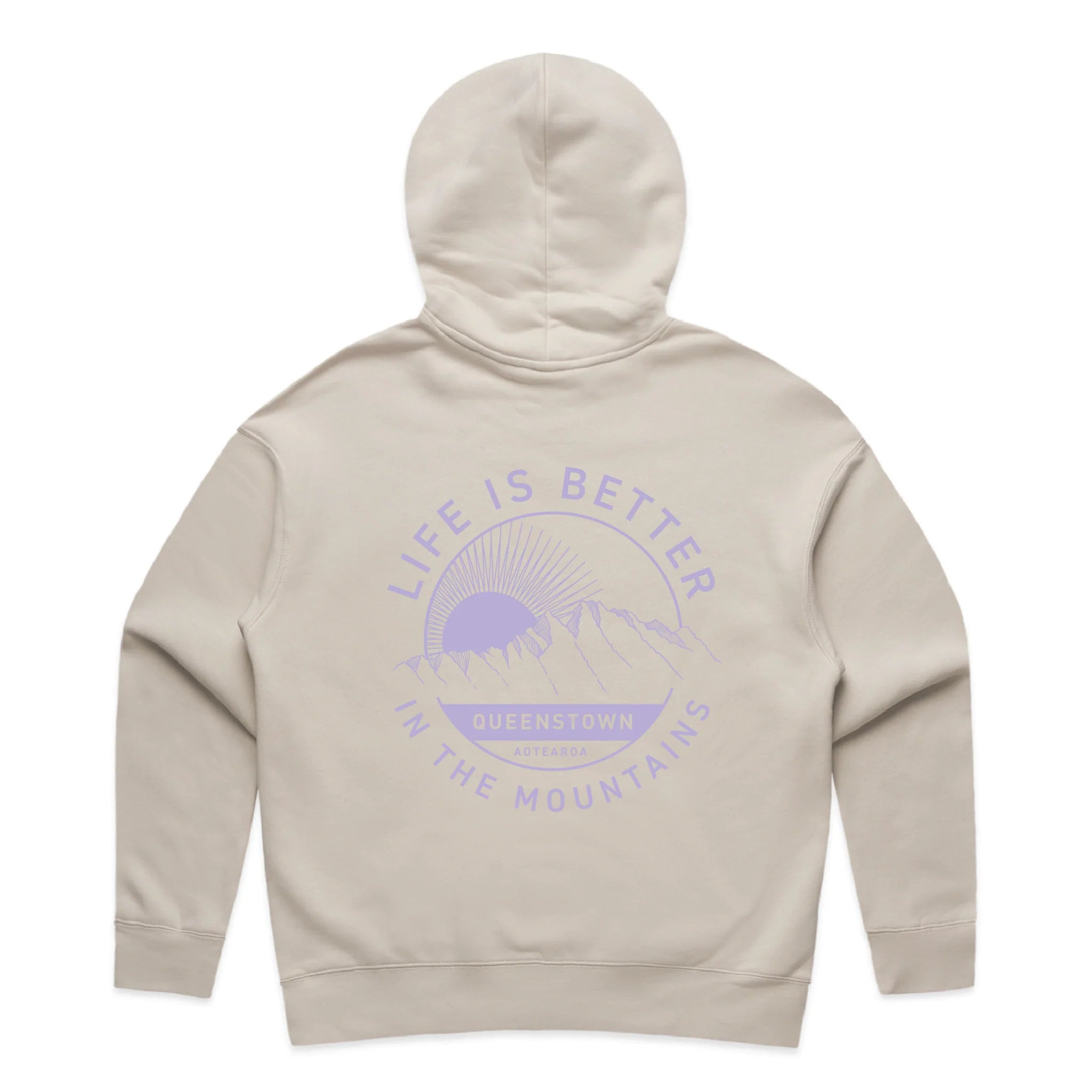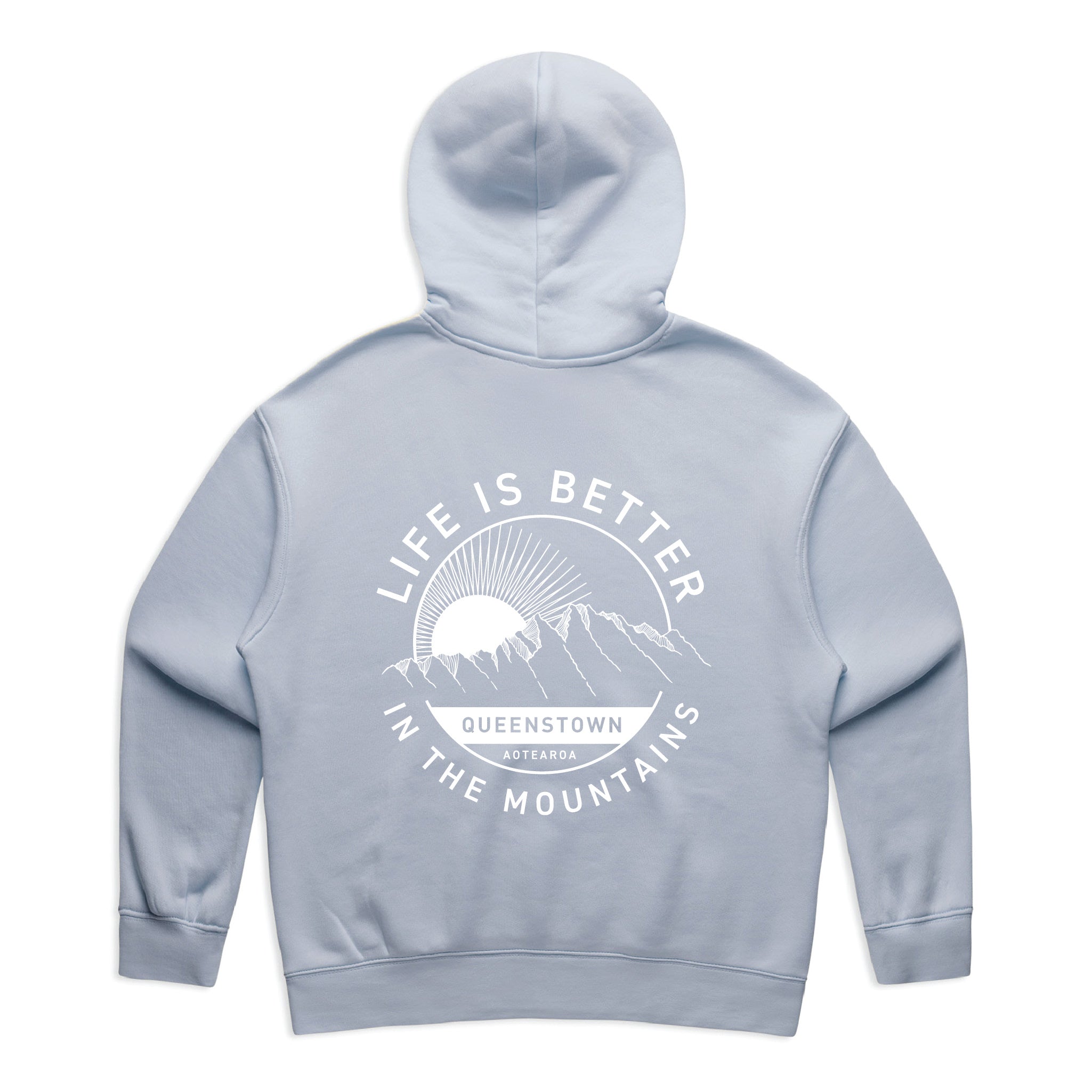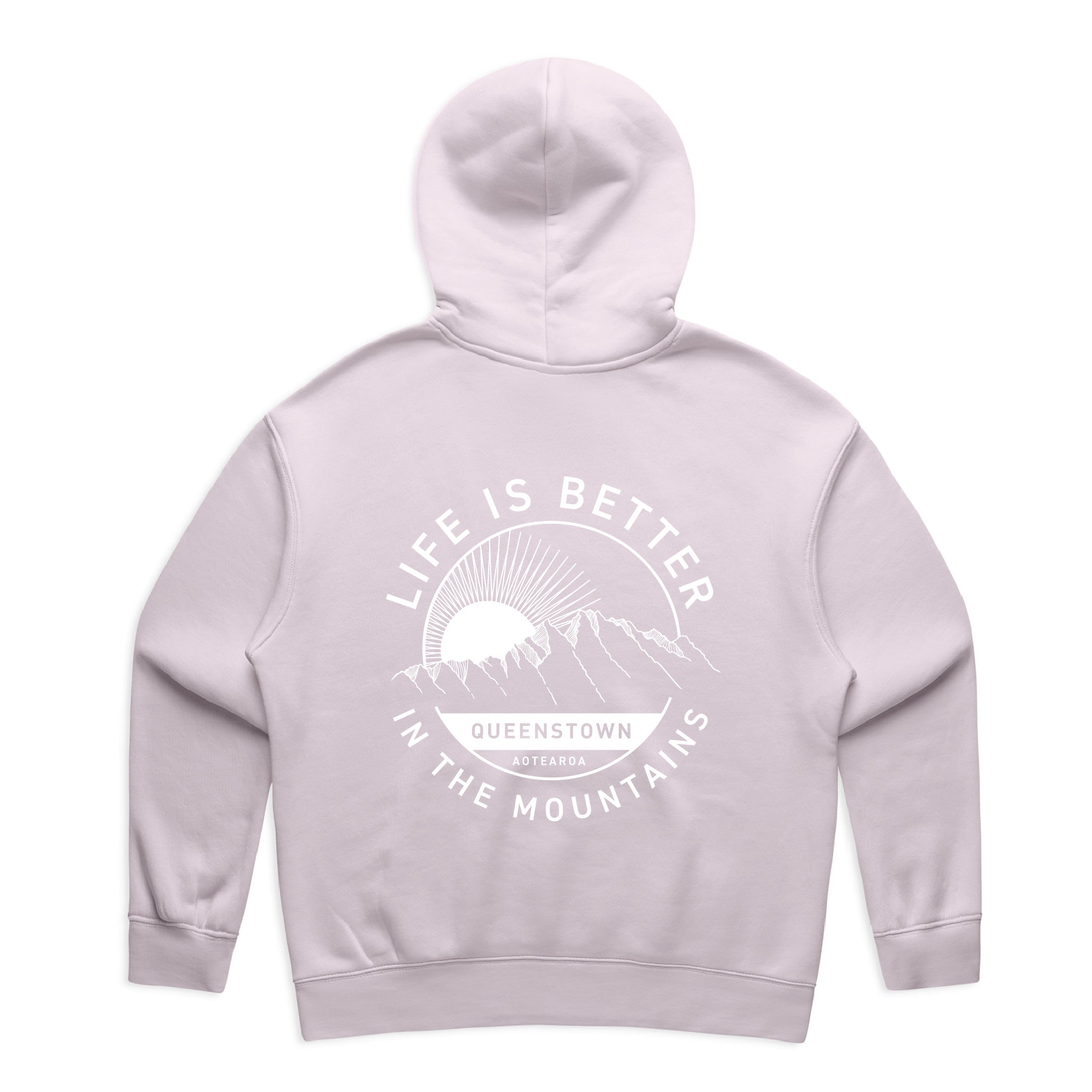 The Women's Queenstown hoodie are Designed and printed in Queenstown, New Zealand.