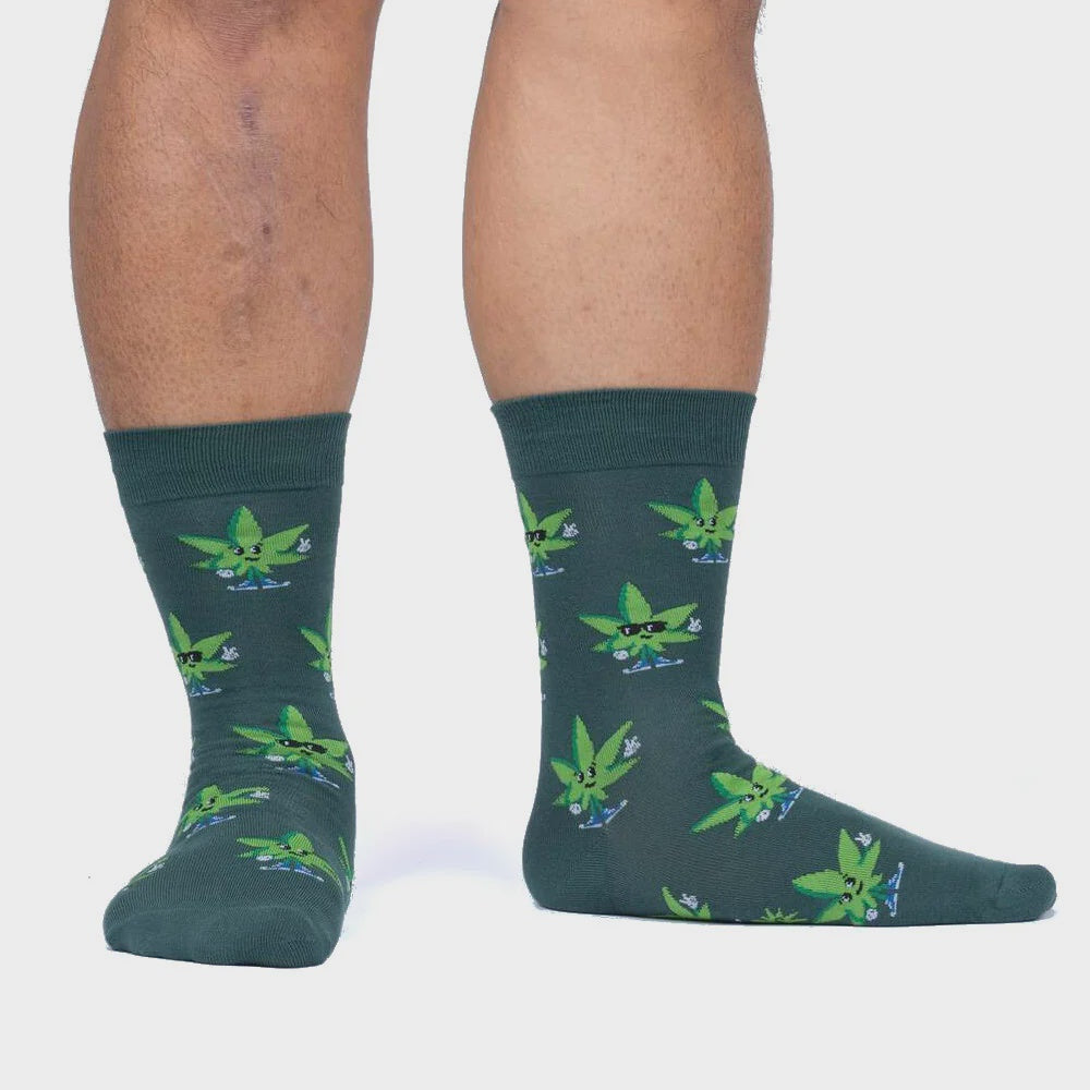 These little leaves come in peace. They're here to be enjoyed, whether you're going to roll them up, put them in some candy, or simply enjoy their shape and positive attitude. These Green Peace Crew Socks are just here for the ride. 58% COTTON, 40% POLYESTER, 2% ELASTANE EXCLUSIVE OF ELASTIC Our combed cotton threads are certified by OEKO-TEX® Standard 100, which means we leave out harmful chemicals to keep your skin safe and happy. Approximately fits men's US shoe size 7-13, fits women's US shoe size 8.5-14.5.