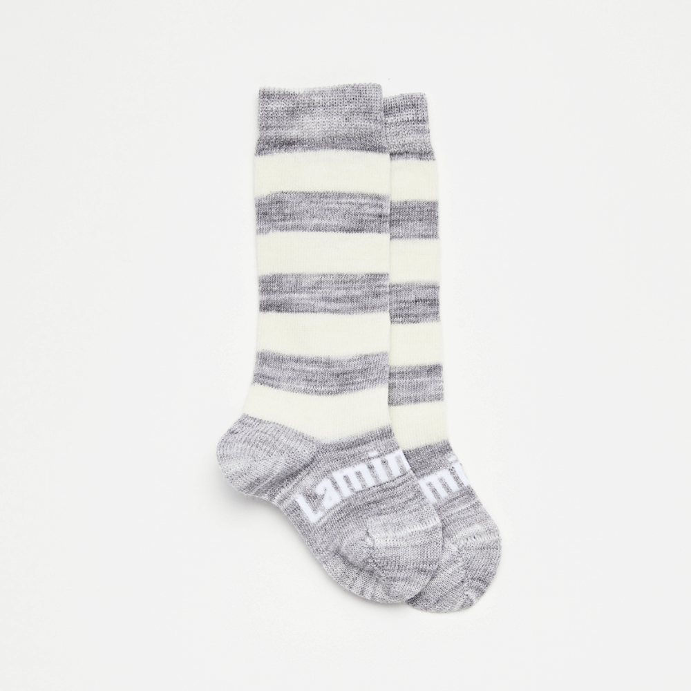 NEWBORN NATURAL - Pebble - Natural with grey stripes Knee high merino socks