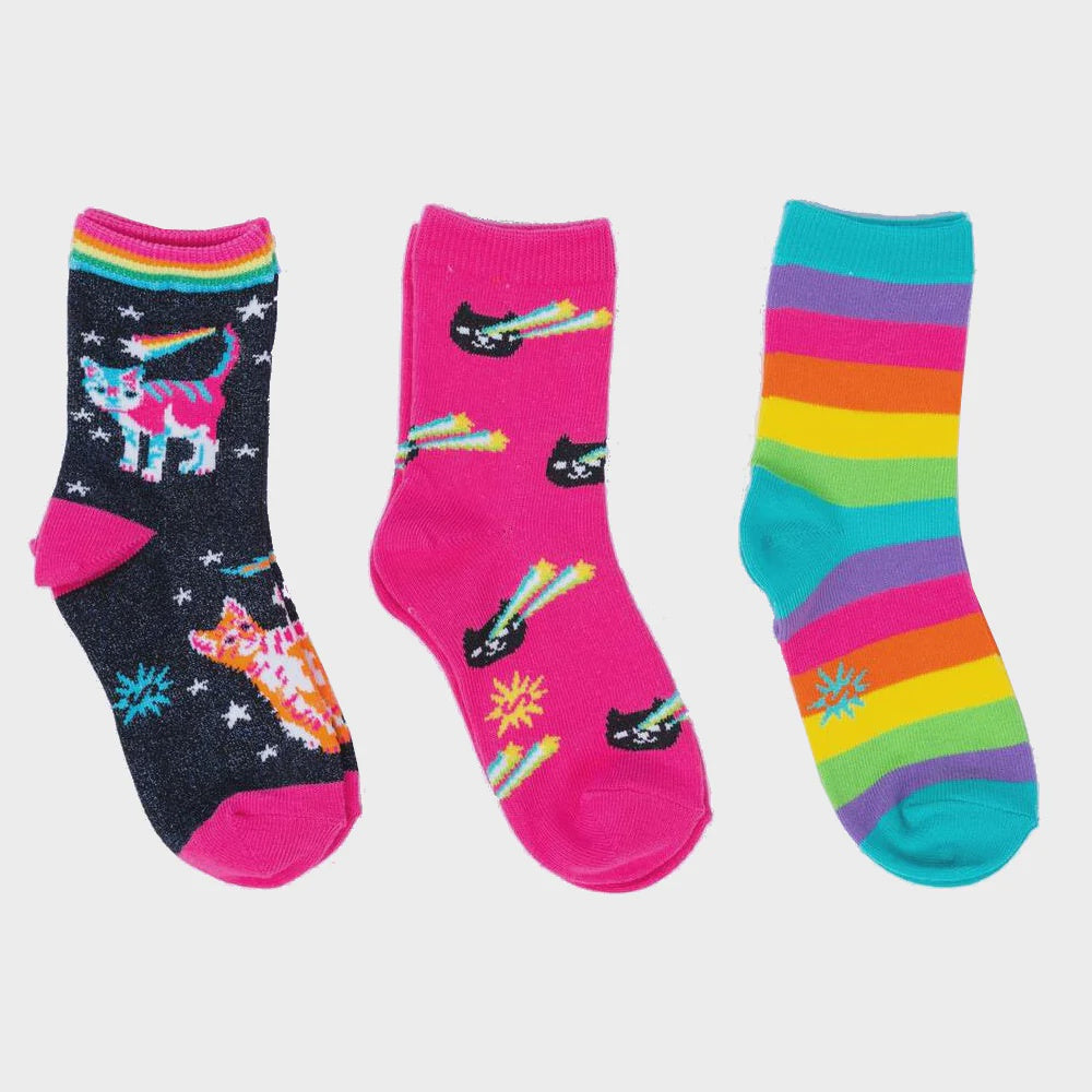 Value bundle of kitties among the stars! These cute cats are floating planet to planet, playing with spaceships, and shooting lasers from their eyes! Junior: Approximately fits children ages 7-10, shoe size US 1-5. Youth: Approximately fits children ages 3-6, shoe size US 8-13. Made in S. Korea. SITM combed cotton threads are certified by OEKO-TEX® Standard 100, which means we leave out harmful chemicals to keep your skin safe and happy.