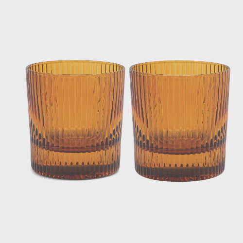 These sophisticated amber ribbed glasses are perfect for short cocktails. Spice up your drinkware collection with some low-key (but still stylish) vibes.